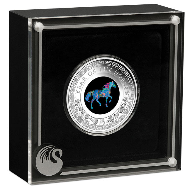A tremendously popular coin, from a tremendously popular series, each black opal Lunar Horse is struck from 1oz of 99.99% pure silver to perfect proof quality. At its core, each coin features a piece of Australian Black Opal carefully crafted in the shape of a Horse.