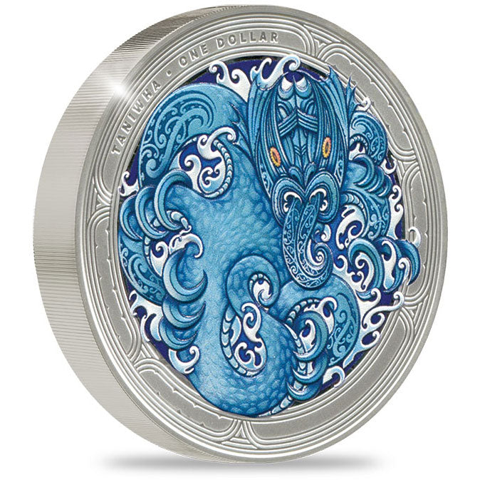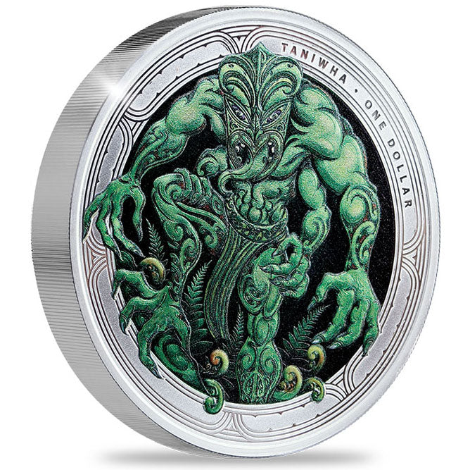 This official New Zealand, one ounce, 99.9% pure Silver proof collector coin set features all three of New Zealand's official Taniwha coins - the 2024 Cave Taniwha, the 2025 Water Taniwha, and the 2026 Forest Taniwha, all created by New Zealand artist Dave Burke.