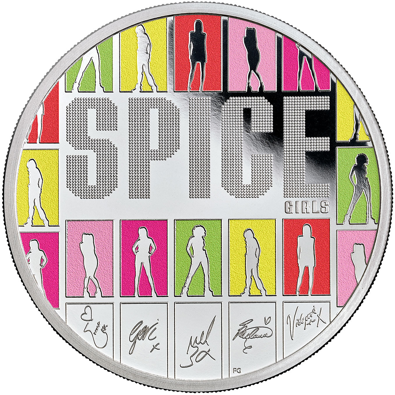 Adhering wonderfully to the playful "Girl Power" message of the group, each coin features the iconic silhouette of each member of the Spice Girls, alongside their signatures and, of course, the Spice Girls logo.