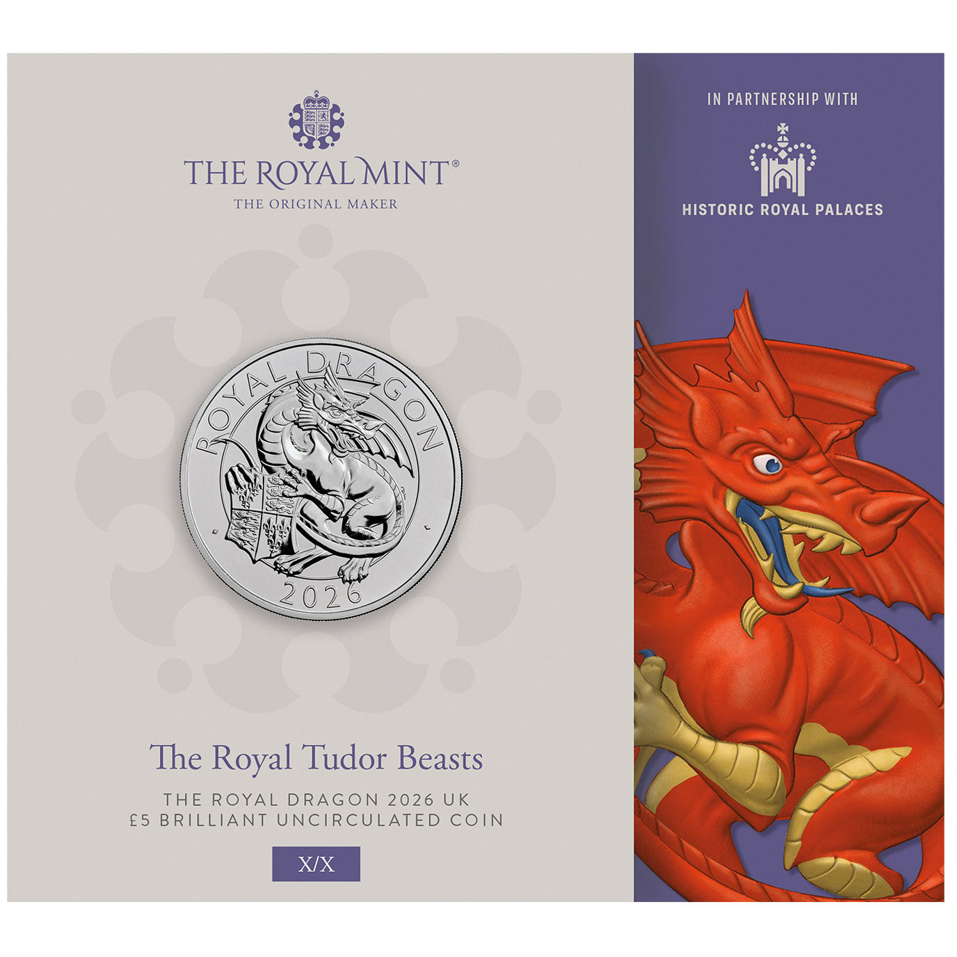 2026 UK £5 Royal Tudor Beasts - Royal Dragon BU