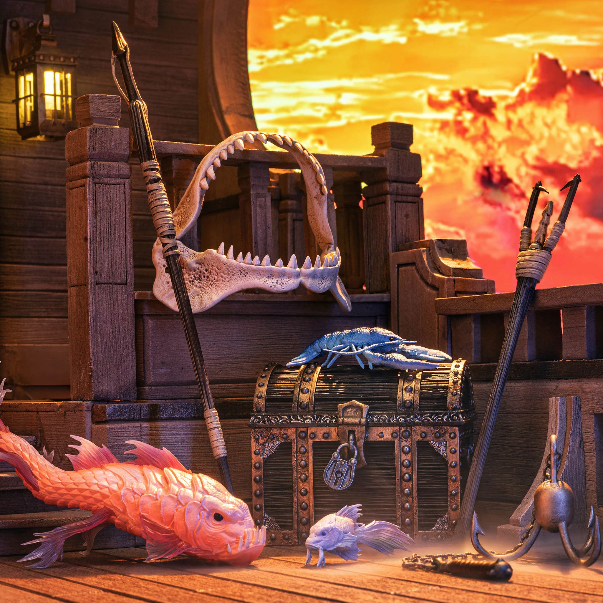 The grappling hook weapon in this form, and the shark jaws, are only included with this set at this time!